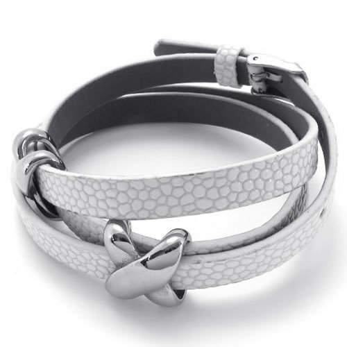 KONOV Bijoux Bracelet Femme - Charms Croix Shamballa - Fantaisie - Acier Inoxydable - Caoutchouc - pour Femme - Chaîne de Main - Couleur Blanc Argent - Avec Sac Cadeau - F21632